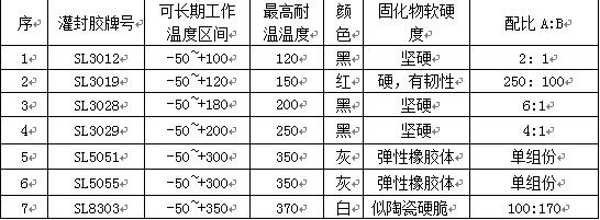 根據(jù)需要加熱的功率不同對灌封膠的要求也不一樣,一般來說按溫度等級劃分的比較多。那么膠水的密封性的好壞,直接影響到電熱管的絕緣及使用壽命。下表全是世林的灌封膠可供參考: