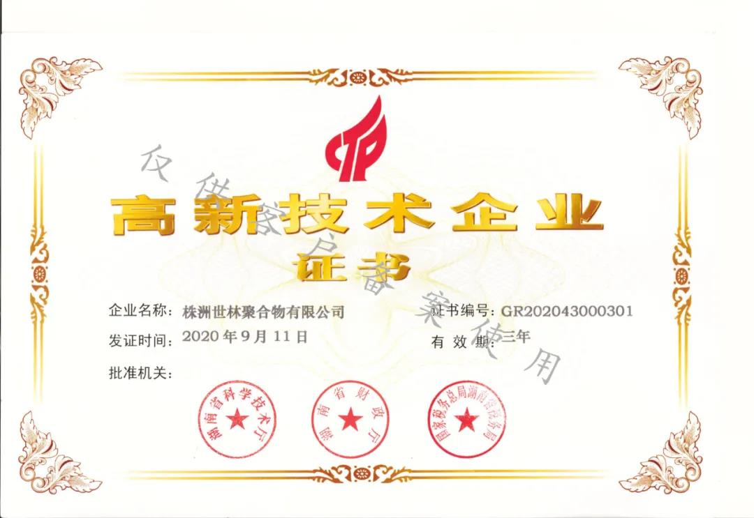 祝賀株洲世林聚合物有限公司獲得“高新技術企業(yè)”