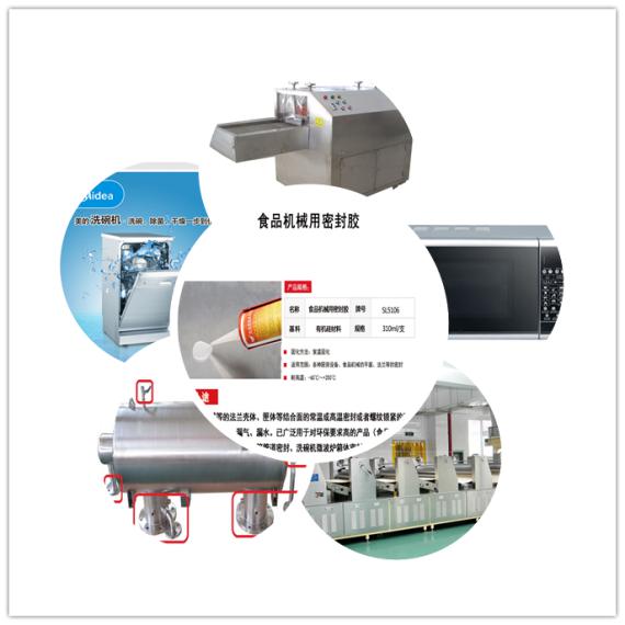株洲世林膠業(yè)生產(chǎn)的SL5106食品級耐高溫密封膠,是一種單組份食品機(jī)械用密封墊,可以用于各種食品機(jī)械的平面和法蘭等的密封,它具有優(yōu)良的密封性,長期耐溫可以達(dá)到250度,短時可達(dá)+300℃。用在產(chǎn)品的間隙處,完全解決了耐高溫,防水,防塵,耐候性強(qiáng),可拆卸等問題。美的洗碗機(jī)上也是用的這款膠水做密封。