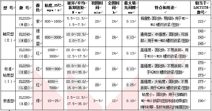 適用于汽車、摩托車、航空發(fā)動機、鐵路機車、礦山機械、采煤設備、風動工具、沖床等螺紋的鎖緊和密封。