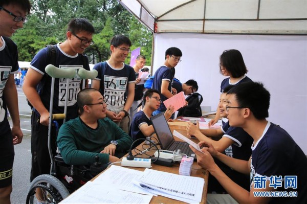 8月23日,社會廣泛關(guān)注的“想帶媽媽上清華”的甘肅省定西市學(xué)生魏祥(坐輪椅者),在清華大學(xué)辦理新生注冊。